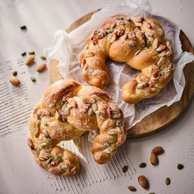 チーズとナッツのツイストパンのレッスンは下の通りです。