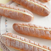 かりっとした触感が特徴の歯ごたえのあるパンです。